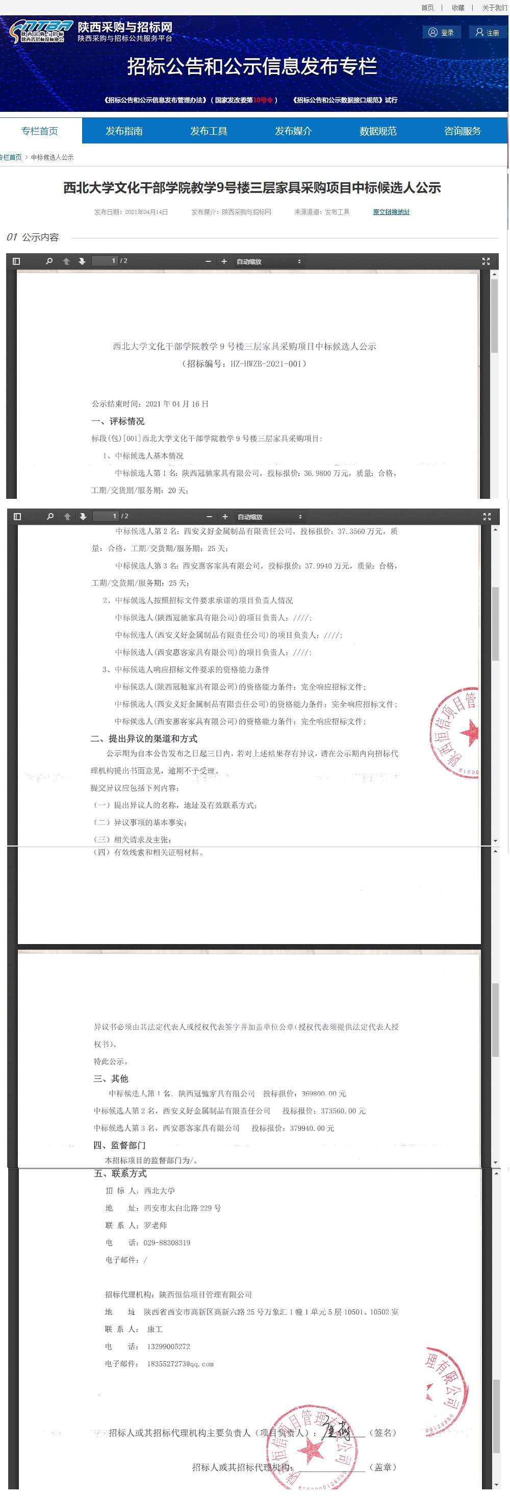 火狐官方网页版文化干部学院教学9号楼三层家具采购项目中标候选人公示